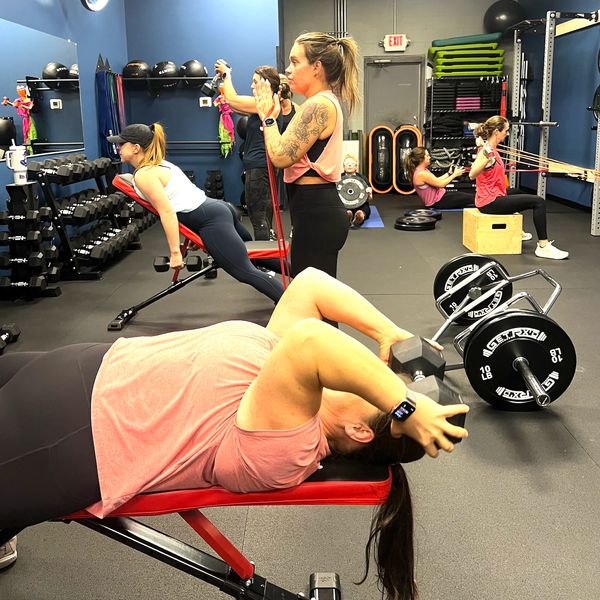 Our training room holds all of the energy, support and tools needed to carry you towards your journey! Personal and Small Group Personal Training is offered by appointment and our Training Team Classes are small so that you remain seen. We offer up to 6 classes per day and a maximum of 12 per class. Your progress is our focus through in-house created programming.